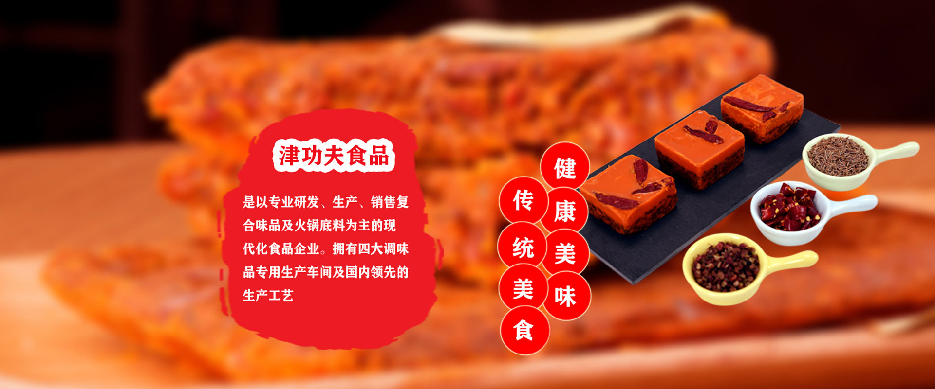 廣東津功夫食品有限公司,位于廣東省肇慶市國家高新區,占地面積約2.5萬平方米,是以專業研發(fā)、生產、銷售復合調味品及火鍋底料為主的現代化食品企業。      "津功夫"為公司注冊商標。公司擁有四大調味品專用生產車間及國內領先的生產工藝;裝備有反應釜、電磁炒鍋、天然氣炒鍋、蒸煮生產線、各型號全自動包裝機、冷封生產線等先進生產設備,年生產能力達2萬噸;配備有微檢、重金屬、金檢、水分、折光等檢測設備。        公司依照國家食品安全法,采用GMP及ISO管理標準,已先后通過ISO-22000質量管理體系認證、HACCP認證。        公司研發(fā)團隊由公司創始人親自帶隊,立足當下,不斷創新,將在調味品行業20余年的潛心研究成果變?yōu)楝F實,精品輩出,為客戶創造更多、更好的價值。公司以川味調味品為根,以客戶需求為本,開發(fā)了復合調味品及火鍋底料兩大板塊的系列產品。復合調味品板塊涵蓋: